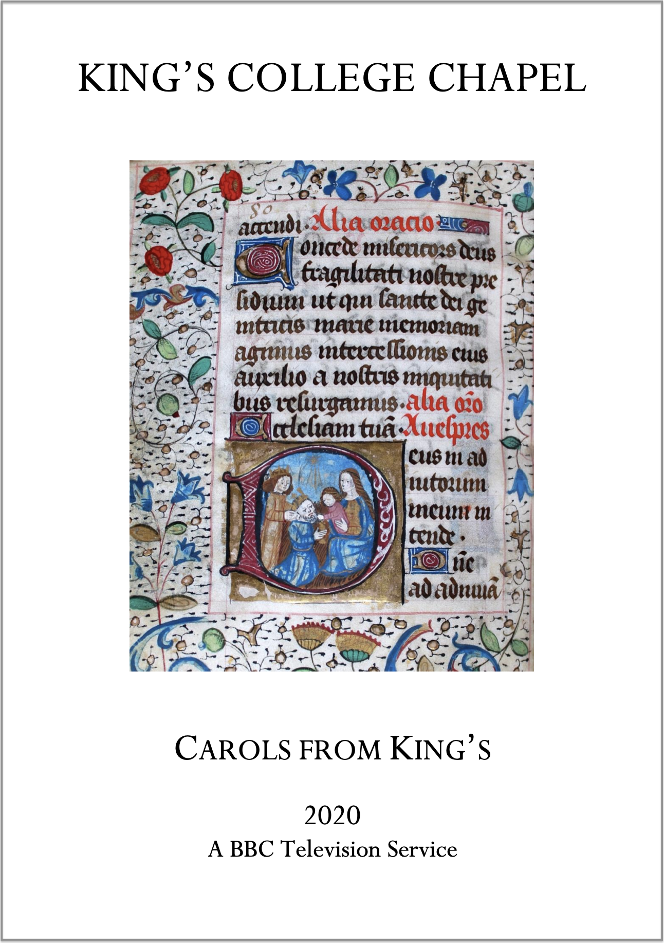 Filmed 12 and 13 December 2020 by the BBC in the Chapel of King’s College, Cambridge, by kind permission of the Provost and Fellows.