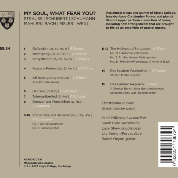 The first album of song from acclaimed bass-baritone and King’s College alumnus Christopher Purves, alongside one of the UK’s finest pianists, Simon Lepper.